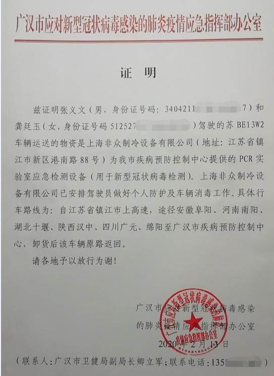 眾有實(shí)業(yè)旗下上海非眾制冷設(shè)備有限公司為四川省廣漢市疾病預(yù)防控制中心PCR實(shí)驗(yàn)室(用于新型冠狀病毒肺炎檢測(cè))提供的凈化型恒溫恒濕空調(diào)設(shè)備已經(jīng)在最短的時(shí)間內(nèi)以最快的專車運(yùn)輸?shù)男问剿椭良部刂行模糜谝痪€疫情防控。