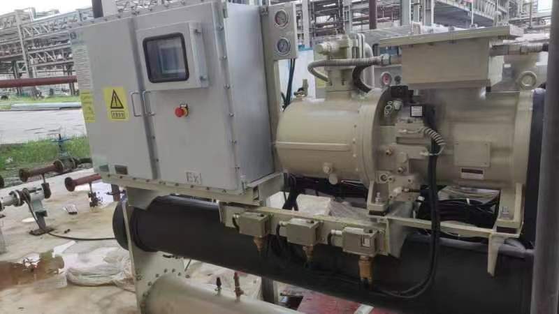 寧波順澤橡膠有限公司選擇了2臺BLSBF175.2EX工業(yè)型防爆型水冷螺桿冷水機 ,根據(jù)買方提供的設(shè)備正常運行時的相關(guān)參數(shù)(制冷量150KW,水進出口溫度20/10℃,環(huán)境溫度35~40℃)為滿足這一要求,在夏季環(huán)境溫度過高時,啟動該冷水機組,設(shè)備設(shè)置于室外,機組設(shè)計進水/出水溫度為12℃/7℃。