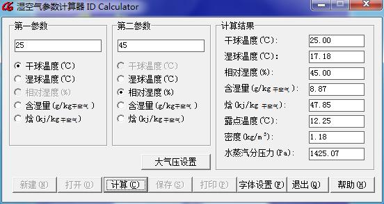 以空氣狀態(tài)點:干球溫度T=25℃ 相對濕度RH45%為例: